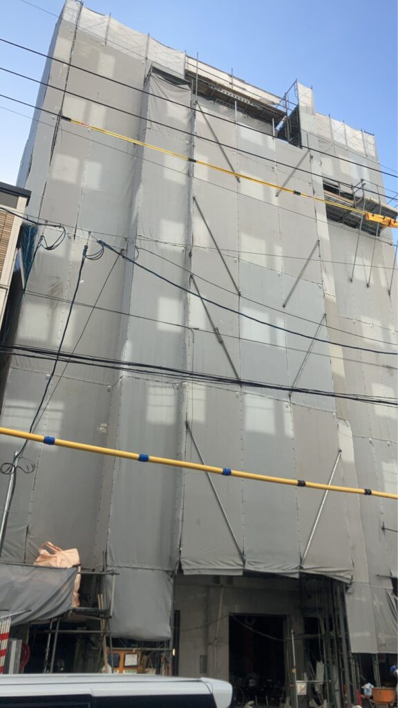 躯体工事完了の連絡はありましたが、建物はまだシートに覆われたままのはずです。